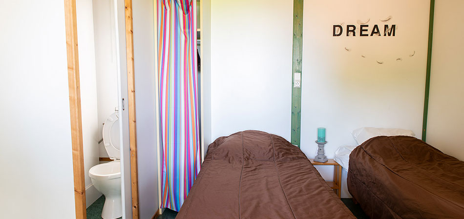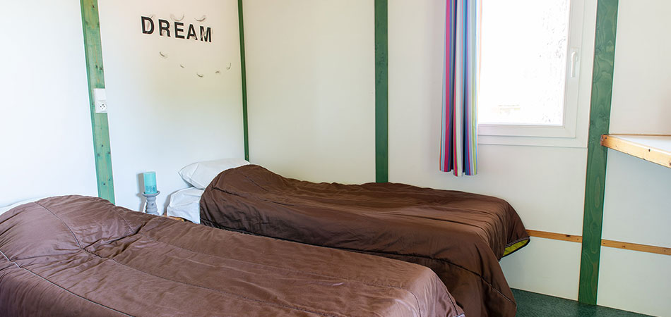 • Chambre N°2 : 2 lits en 90 ou 1 grand lit en 140.