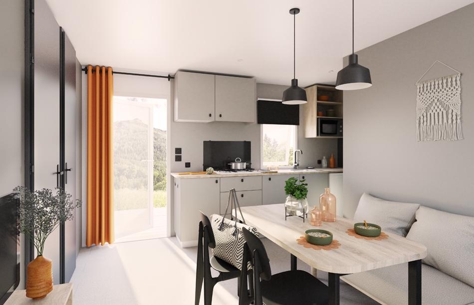 Mobil-homes récents pour une location tout confort à prix réduit, équipés de :